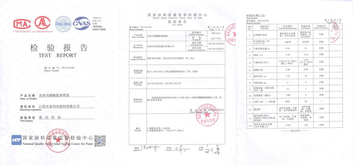 水性工業(yè)烤漆檢測報告